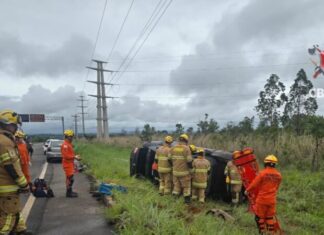 Capotamento na DF-440 mobiliza bombeiros e deixa motorista ferido em Sobradinho