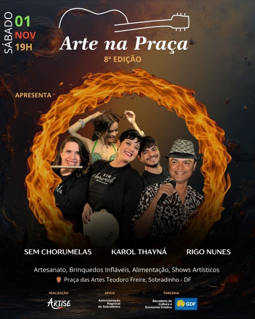 O chorinho vai dar o tom na sexta noite de eventos do Projeto Arte na Praça, que acontece no próximo sábado (1º), a partir das 19h, na Praça Teodoro Freire, na Quadra 8, em Sobradinho.