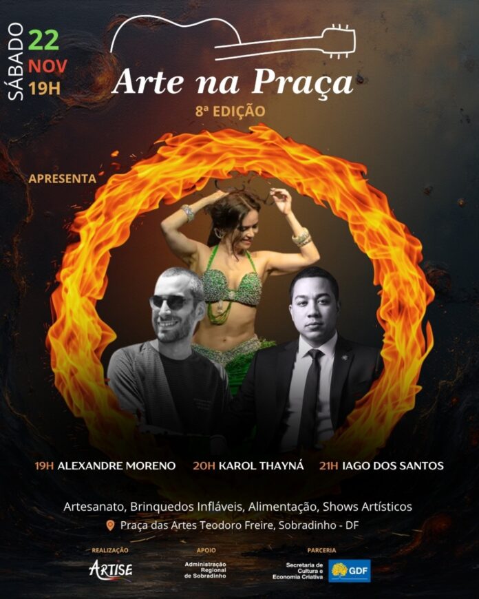 A  oitava edição  do Projeto Arte na Praça chega ao seu novo evento de 2025. Neste sábado (22), a cidade serrana  terá  mais uma noite vibrante com música e dança na Praça das Artes Teodoro Freire, na Quadra 8 de Sobradinho.