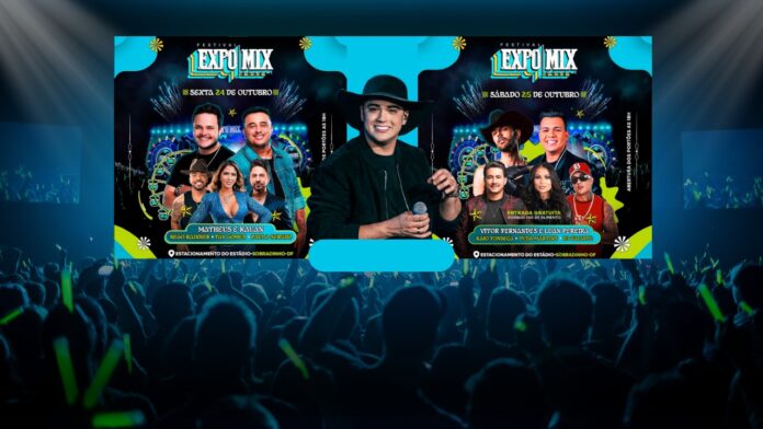 A Secretaria de Cultura e Economia Criativa do DF (Secec-DF) promove o Festival ExpoMix Brasil, já consagrado como um dos maiores eventos do gênero no país – que chega à sua sexta edição -, entre os dias 24 e 26, em Sobradinho, no estacionamento do estádio Augustinho Lima. O evento reunirá artistas de renome nacional em três dias de festa – a entrada é gratuita, mediante retirada de ingressos pela plataforma parceira, a partir deste sábado (18), e doação de 2 kg de alimentos não perecíveis.