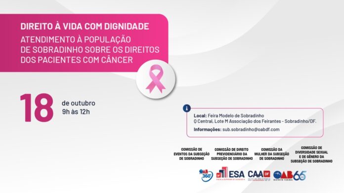 Aline Mello, copresidente da Comissão da Mulher da Subseção de Sobradinho, reforça o aspecto de acolhimento e a visão holística do evento: “O evento é uma iniciativa da Comissão da Mulher da OAB Sobradinho, com o apoio de parceiros e voluntários que acreditam na importância de informar, acolher e fortalecer mulheres e homens que enfrentam o câncer. Estaremos disponíveis para conversar, tirar dúvidas e orientar sobre benefícios, direitos previdenciários, trabalhistas e assistenciais, oferecendo um suporte que vai além do jurídico. Participar e apoiar essa causa é um gesto de solidariedade e empatia. Juntos, podemos promover informação, acolhimento e esperança, porque cuidar da saúde e garantir direitos também é um ato de amor.”